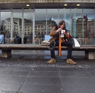 I was definitely right to go into a big city – the opportunities are so much better – and I ended up working with a couple of ‘themes’ in mind. The first was the one I had planned – people eating in public – and the second was a response to one of the photos that I took early on, of two men, arm-in-arm, one with a walking stick. It set me off looking for other ‘couples’, with the idea that one could explore the way they walk together and interact as they go down the street. The other good thing to emerge from the day was that Sunday 6th Feb is the Chinese New Year celebrations day in Manchester. Weather permitting, it could be ideal for ‘Comfortable Situation’ and indeed other possibilities.